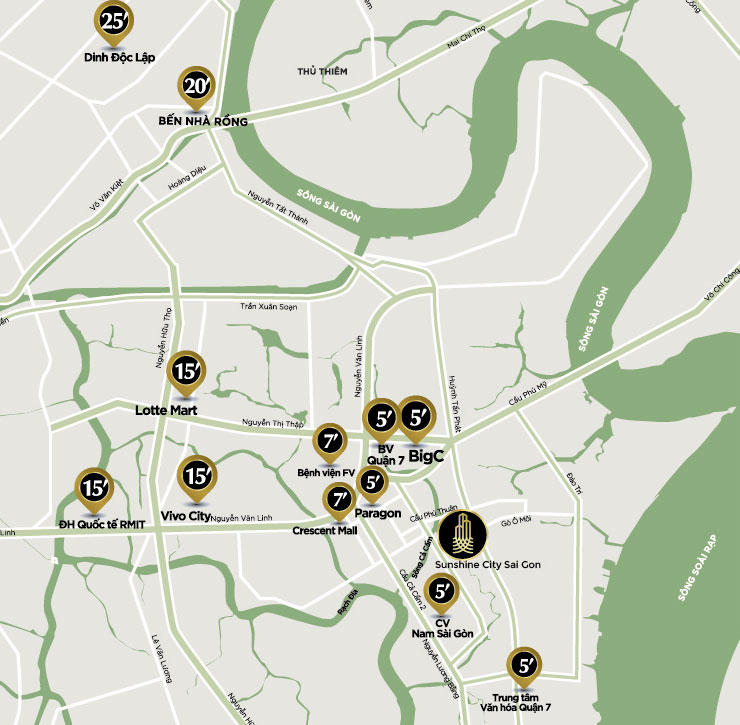 Liền kề Khu đô thị Phú Mỹ Hưng, vùng lõi huyết mạch của Quận 7, Sunshine City Sài Gòn được thừa hưởng toàn bộ tiện ích của khu vực với những bệnh viện, trường học hàng đầu, bên cạnh đó là các điểm giải trí đẳng cấp phục vụ cuộc sống thượng lưu.